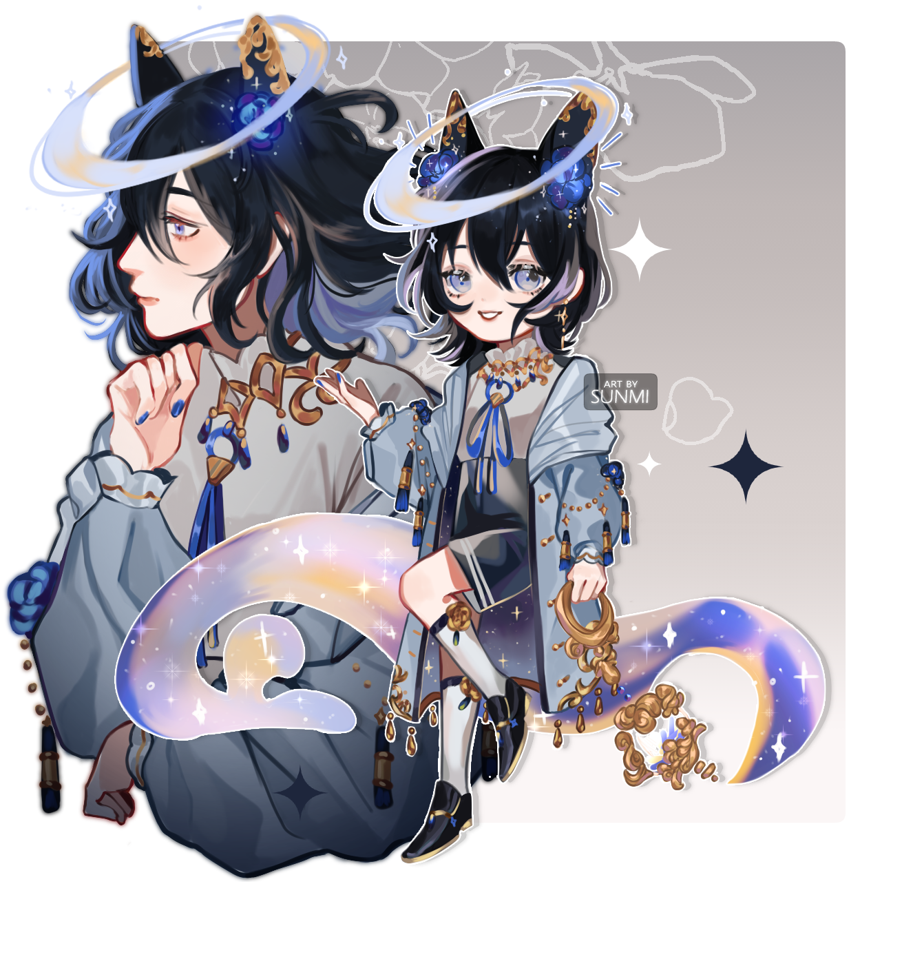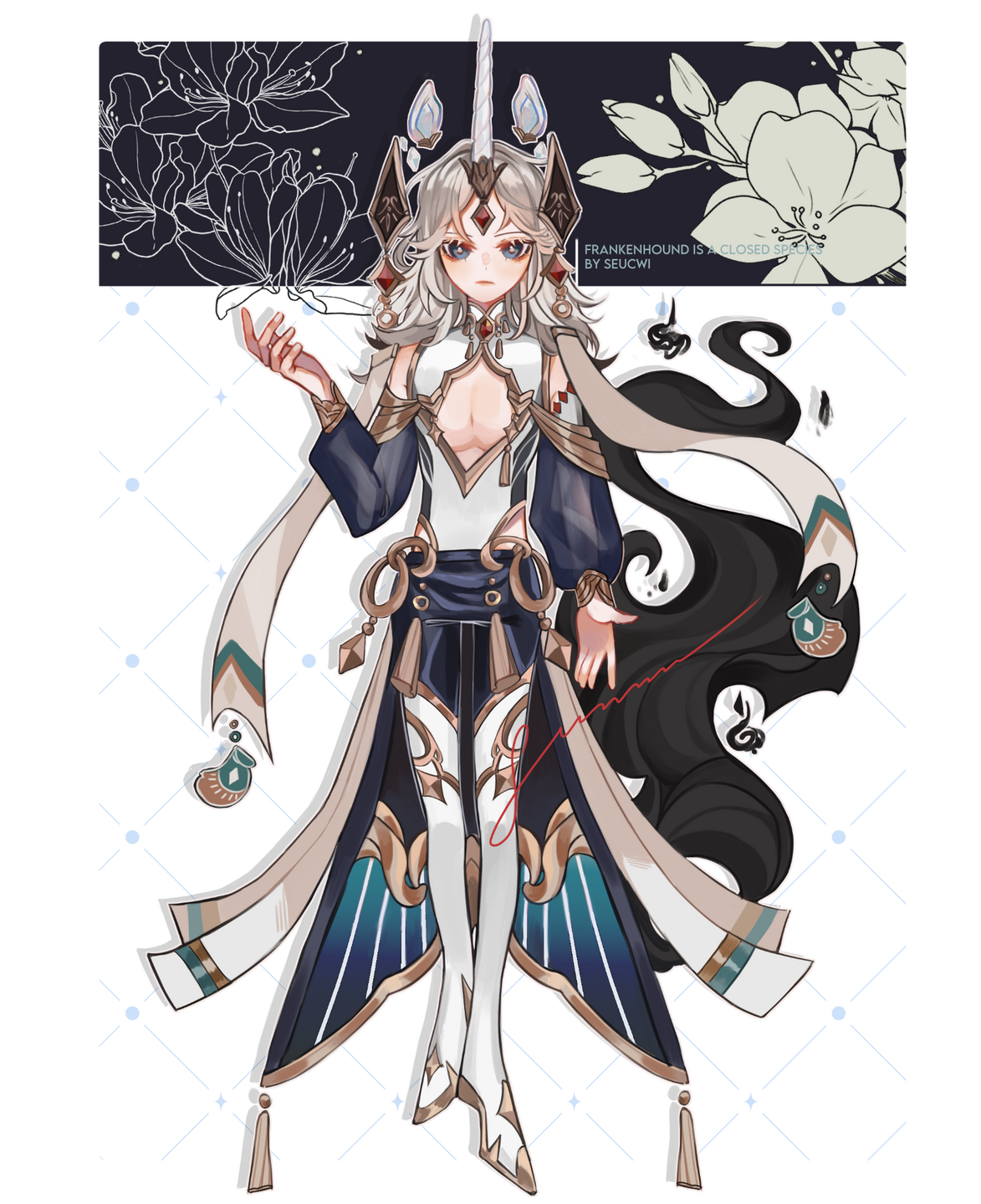 Includes shaded version and color palette.Full rendered image with simple background/template (free of charge)Backgrounds are abstract figures or small props like flowers and such.Any extra reference you want added to your character sheet will have an extra fee. [Items, extra expressions, etc...]Price might change depending on the complexity of your request.If requesting for a CS must show proof of owning an slot or permission from said species.